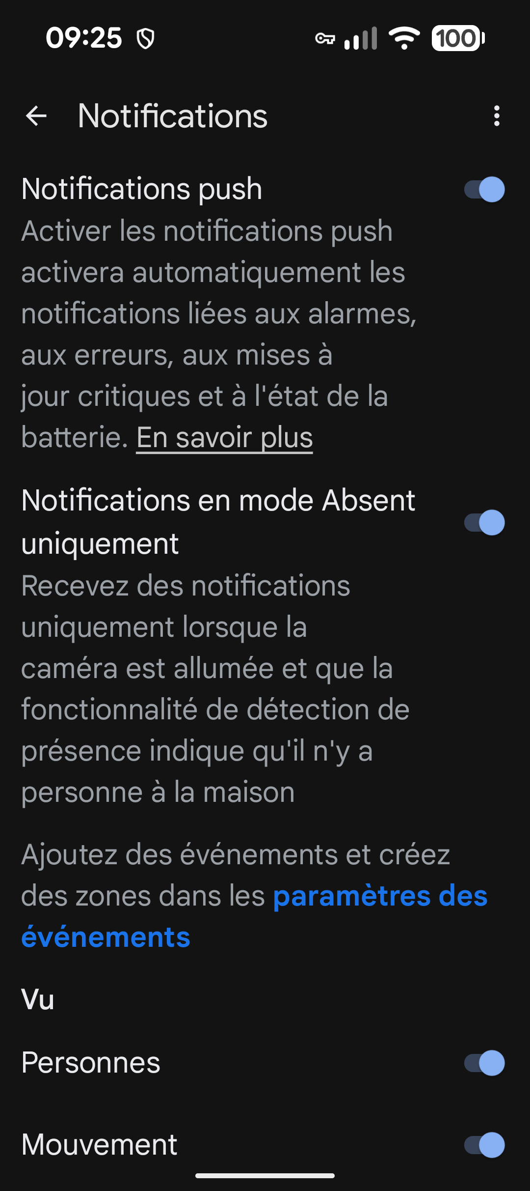 Pour cela, rendez-vous dans les réglages des notifications liées aux caméras de votre Nest Hub Max et il faudra sélectionner « Notifications Push ».
